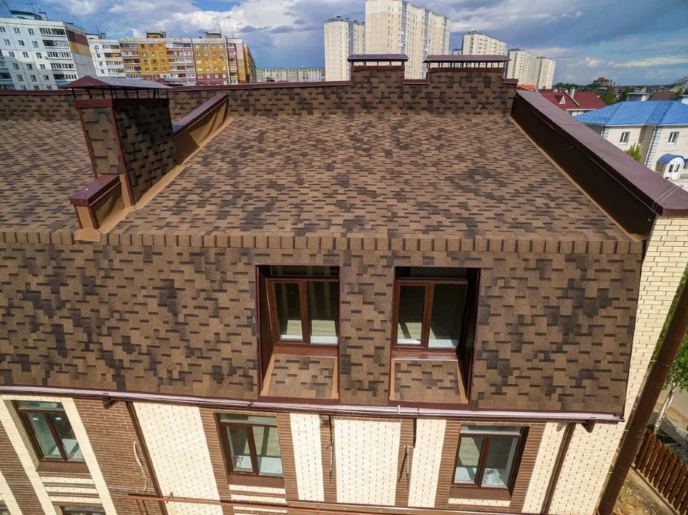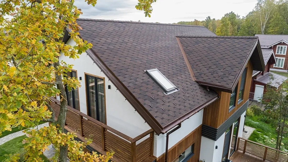 Гибкая черепица Shinglas – это не только качественный и надёжный материал, который можно применять на геометрически сложных поверхностях, благодаря многослойности черепицы – это и барьер от шума во время дождя – но и эффектный внешний вид, практичность и безопасность в течении многих лет.